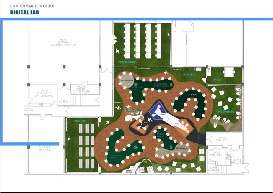 With so many universities offering Art and Design Degrees and fees about to quadruple at the beginning of the next university year – London College of Communications will have to work harder to attract students. As a result of all this the university has decided to redevelop its technical facilities starting with our digital lab.